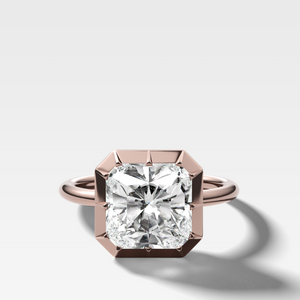 Button Back Solitaire Engagement Ring With a Square Radiant Cut Diamond