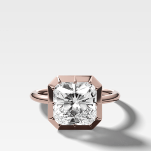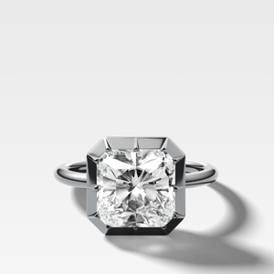 Button Back Solitaire Engagement Ring With a Square Radiant Cut Diamond