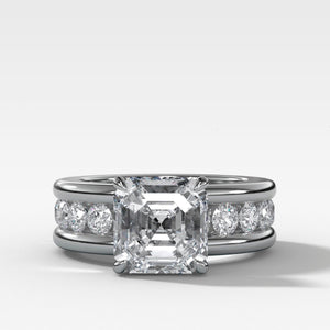 Send ring sizerThis engagement ring features beautiful 3mm rounds fit snugly between metal channels acting as a frame for the stones. For those who love a ring with the wow-factor. Featured here in the chunky version of our Channel Set Engagement Rings with an Asscher cut diamond.