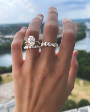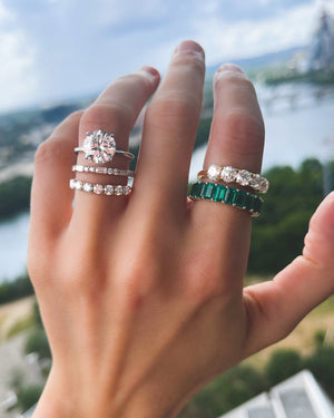 Our Claw series features an assortment of rings and wedding bands using 4 micro prongs & individual baskets to hold each stone. Similar to the diamond-focus style of a shared prong band, the tiny prongs add vintage flair without distracting from your diamond.