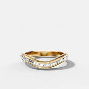 A refined contoured channel-set band featuring sleek baguette diamonds, arranged in a seamless row of brilliance. Modern and elegant, it brings effortless sophistication to any stack or stands beautifully on its own.