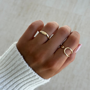 Precious metal curved to create an organic fit around the finger. The contoured wedding band is molded to perfection.