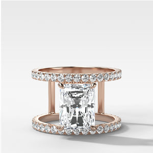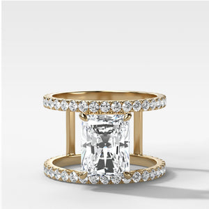 Double Row Gap Engagement Ring With Elongated Radiant Cut Diamond