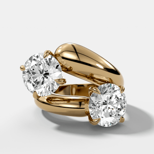 Toi et Moi but make it bigger, bolder, and more unique! This open wrap style ring features two dazzling 3ct diamonds leaning into the gold.