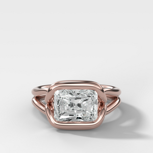 Dual Lasso Engagement Ring with East West Elongated Radiant Cut Diamond