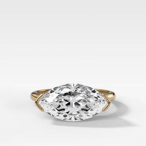 READY TO SHIP: East West Half Bezel Solitaire Engagement Ring with Marquise Diamond