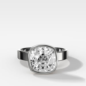 Finest Bezel Set Engagement Ring With Cushion Cut Diamond