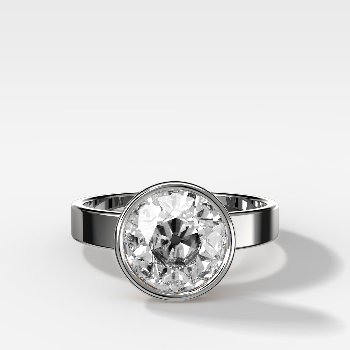 Finest Bezel Set Engagement Ring With Old Euro Cut Diamond