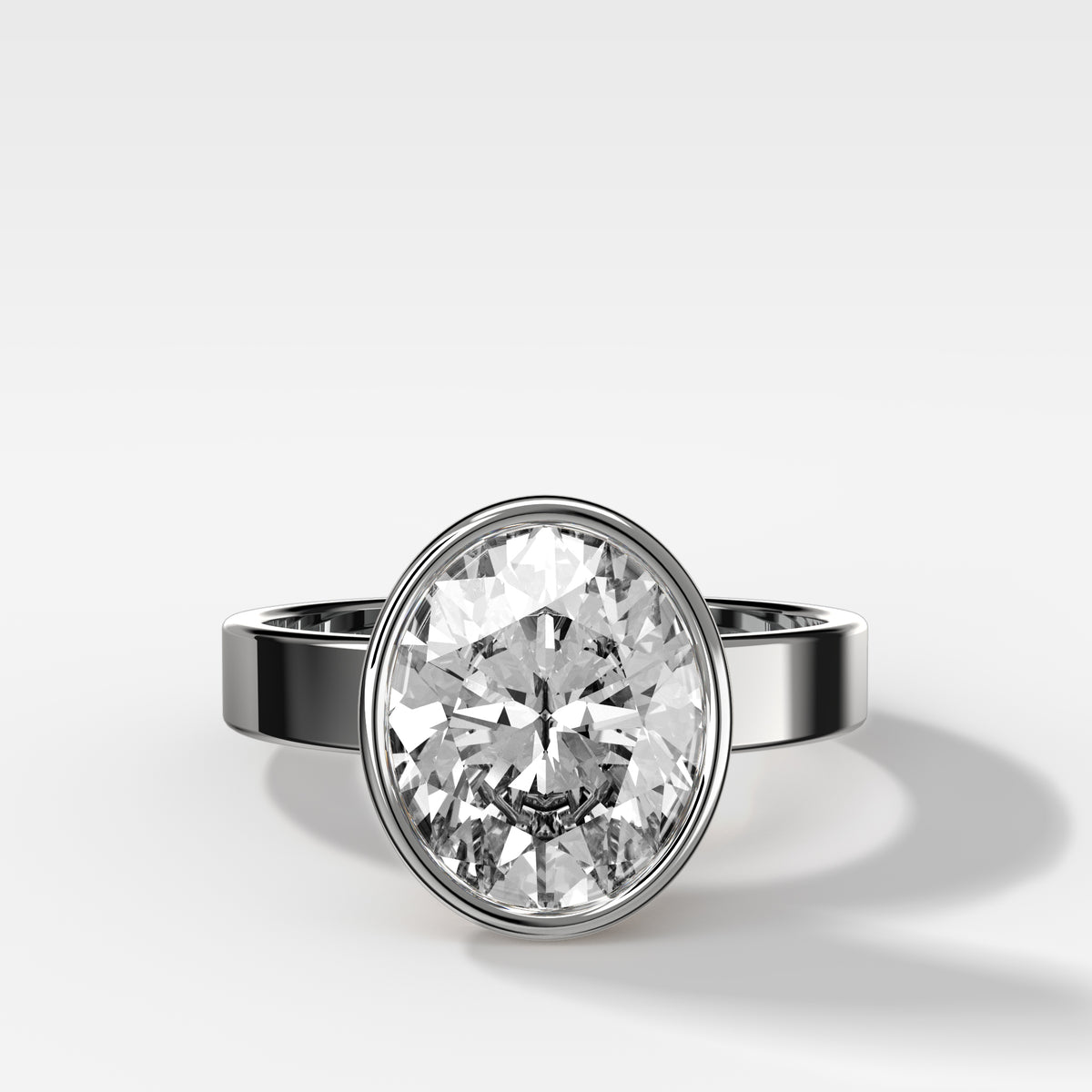 Finest Bezel Set Engagement Ring With Oval Cut Diamond