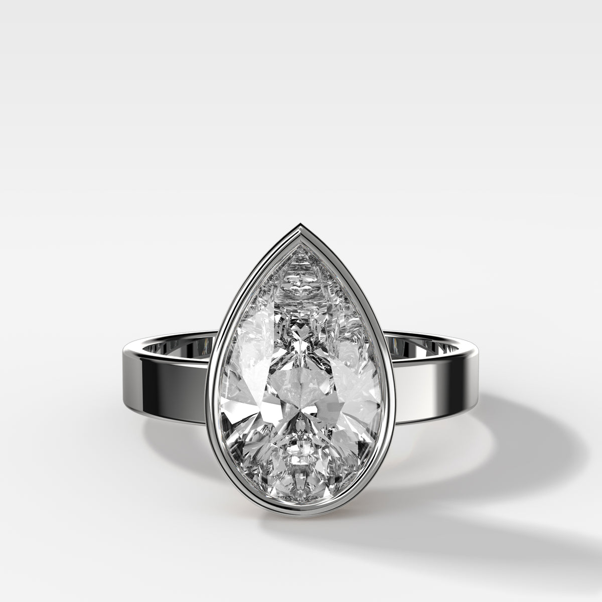 Finest Bezel Set Engagement Ring With Pear Cut Diamond