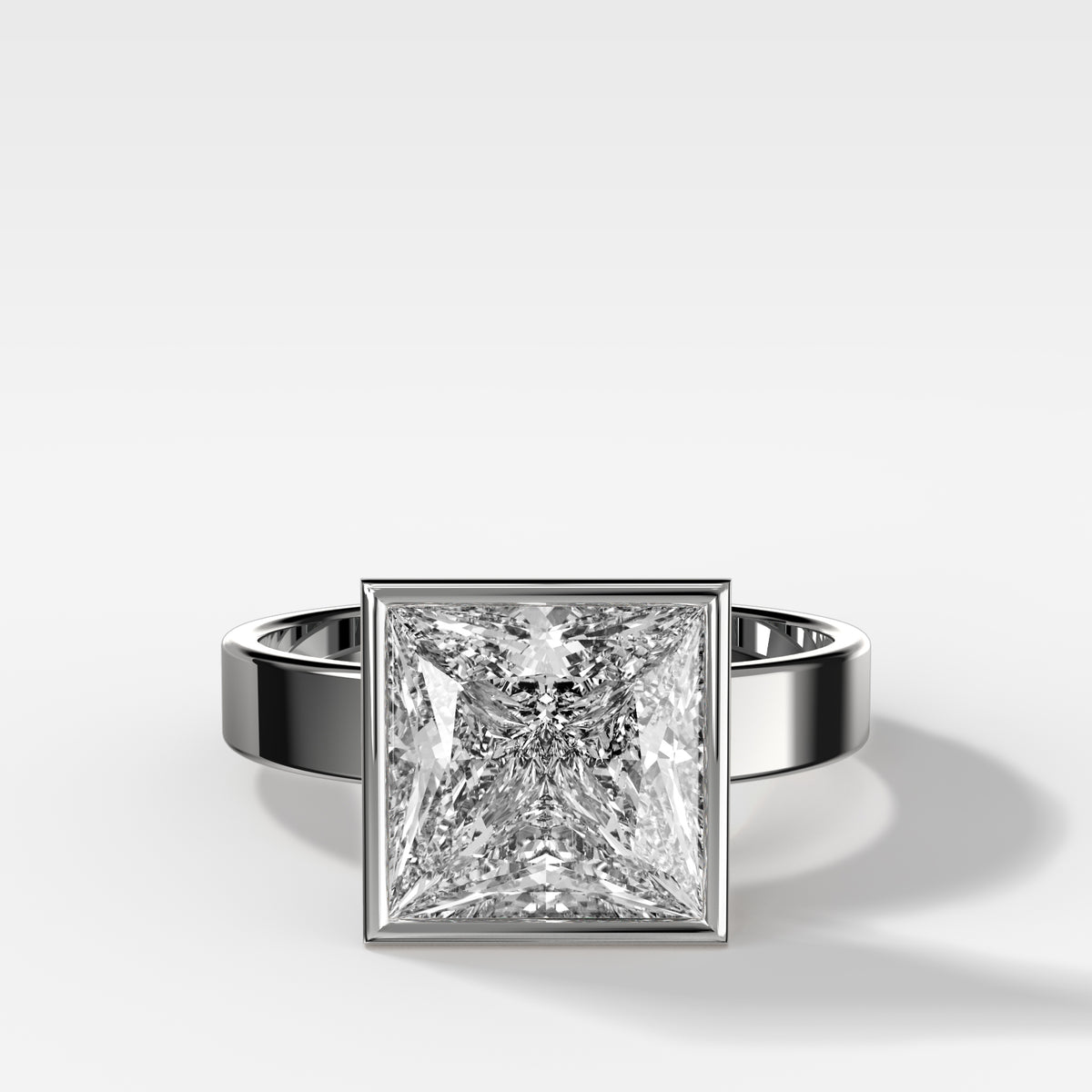 Finest Bezel Set Engagement Ring With Princess Cut Diamond