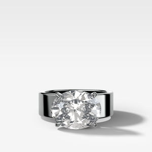 Finest Cigar Band Engagement Ring with East West Oval Cut Diamond