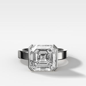 Finest Half Bezel Solitaire Engagement Ring With Asscher Cut Diamond