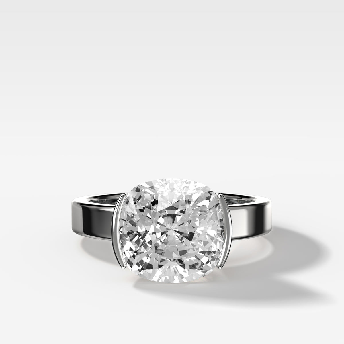 Finest Half Bezel Solitaire Engagement Ring With Cushion Cut Diamond