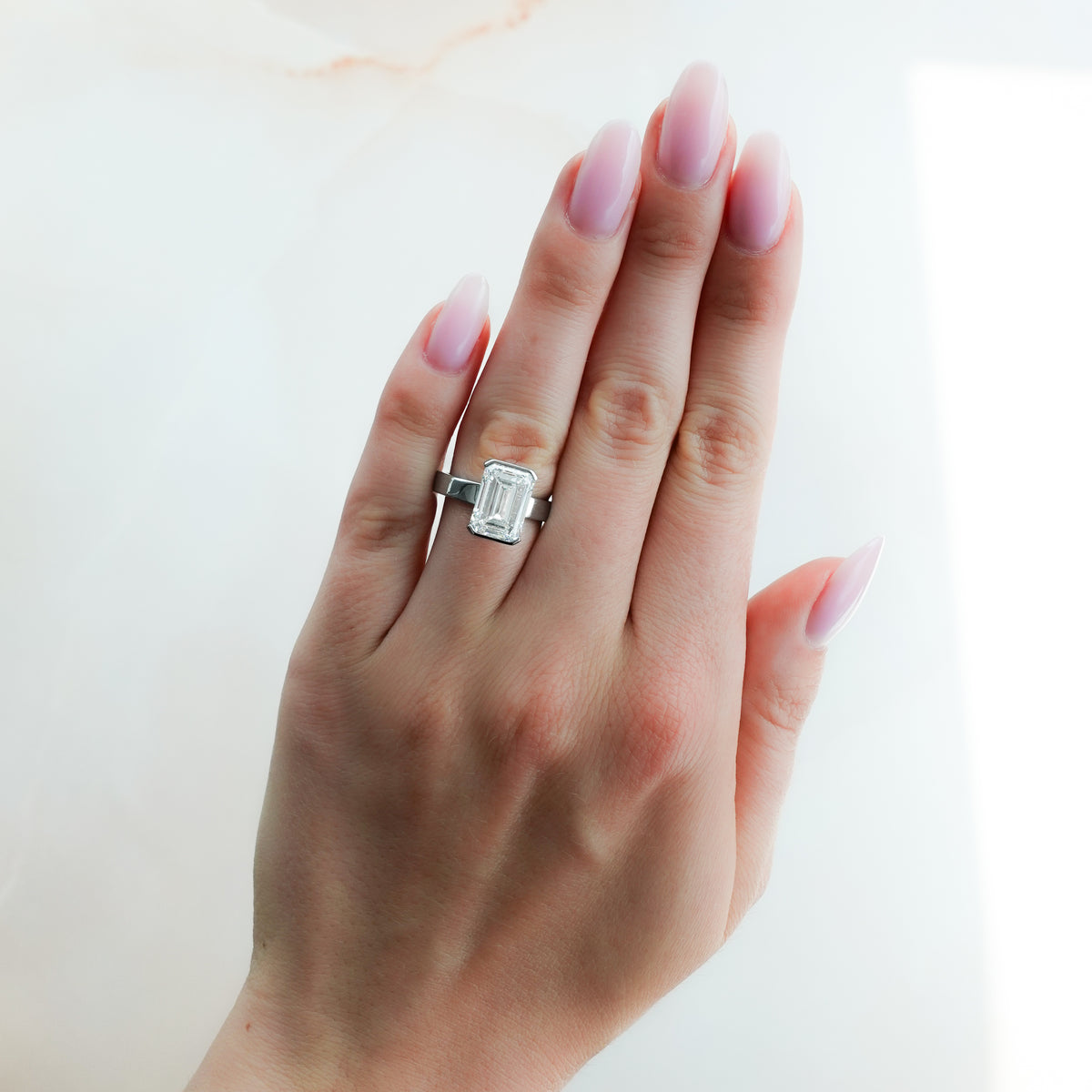 Finest Half Bezel Solitaire Engagement Ring With Emerald Cut Diamond