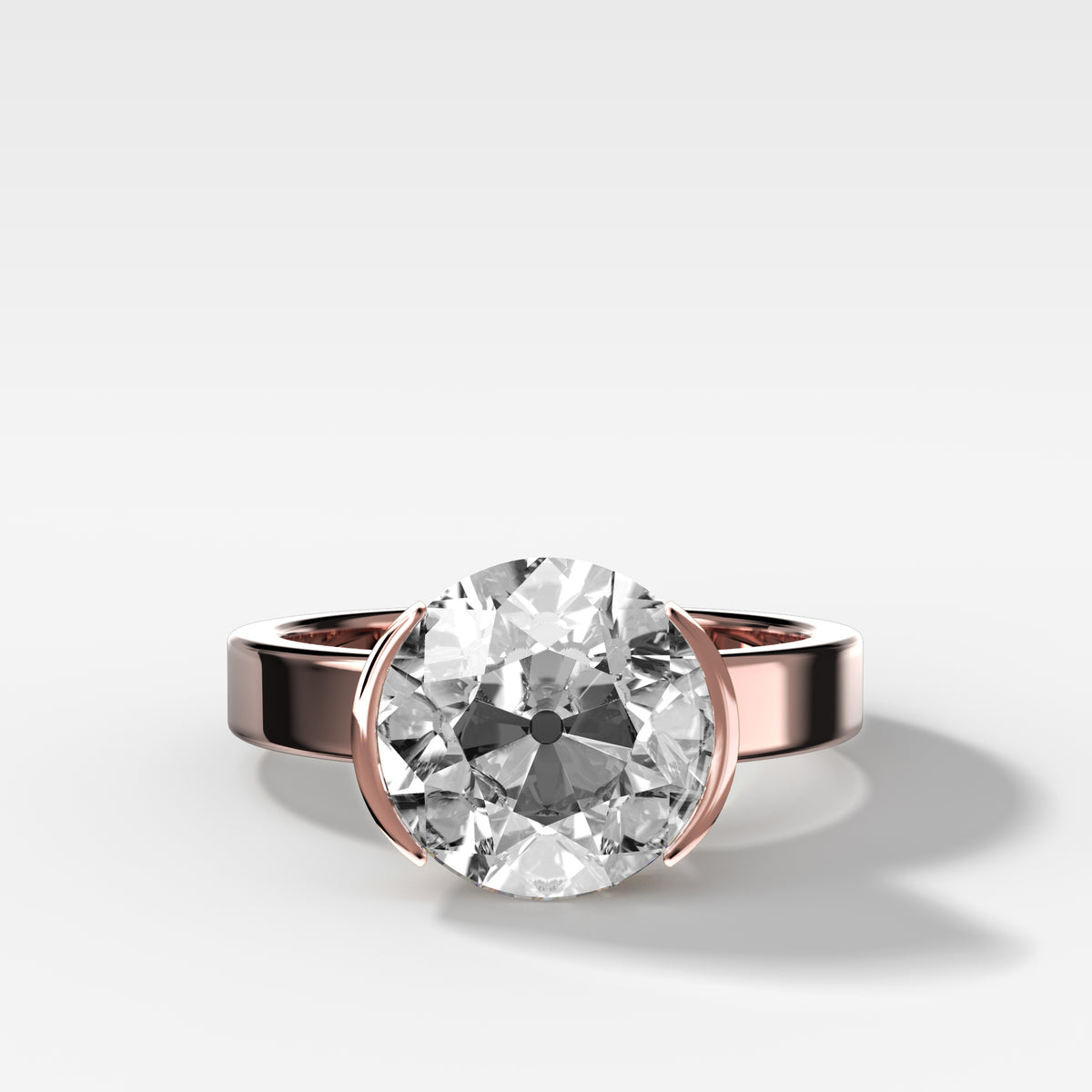 Finest Half Bezel Solitaire Engagement Ring With Old Euro Cut Diamond