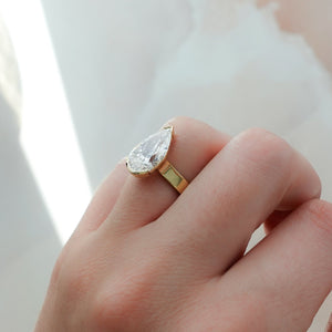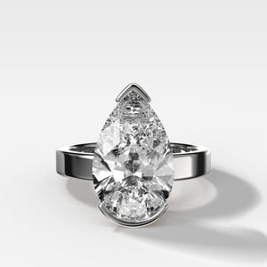 Finest Half Bezel Solitaire Engagement Ring With Pear Cut Diamond