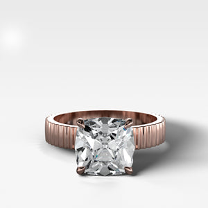 Finest Ridged Solitaire Engagement Ring With Old Mine Cut Diamond