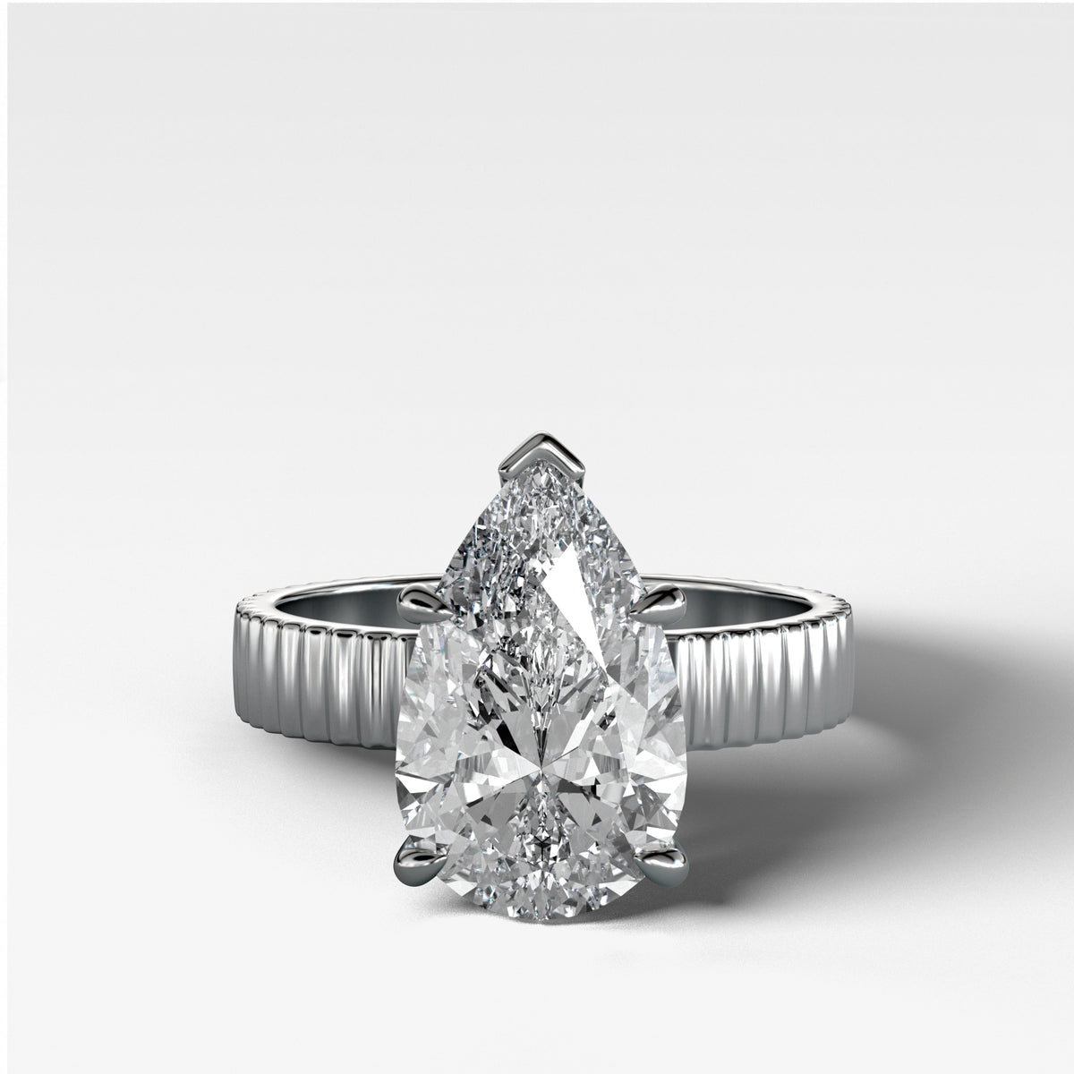 Finest Ridged Solitaire Engagement Ring With Pear Cut Diamond