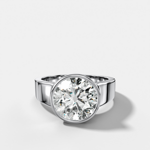 Finest Tapered Bezel Set Engagement Ring With Old Euro Cut Diamond