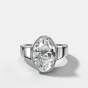 Finest Tapered Bezel Set Engagement Ring With Oval Cut Diamond