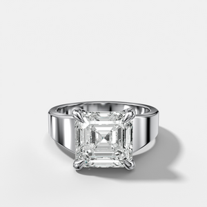 Finest Tapered Engagement Ring With Asscher Cut Diamond