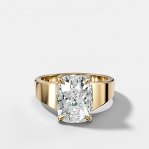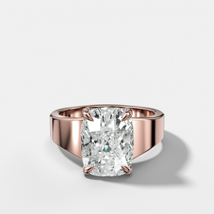 Finest Tapered Engagement Ring With Elongated Cushion Cut Diamond