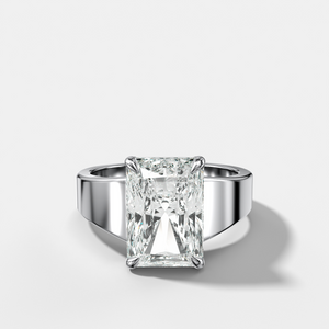 Finest Tapered Engagement Ring With Elongated Radiant Cut Diamond