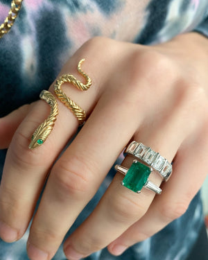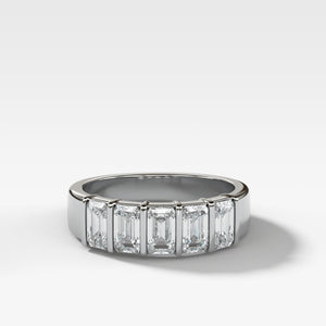 Big and chunky. Far from dainty but close to our heart, this bar set ring is made in with five gorgeous emerald cut diamonds. This is a gift for the girl that is so over dainty jewelry.