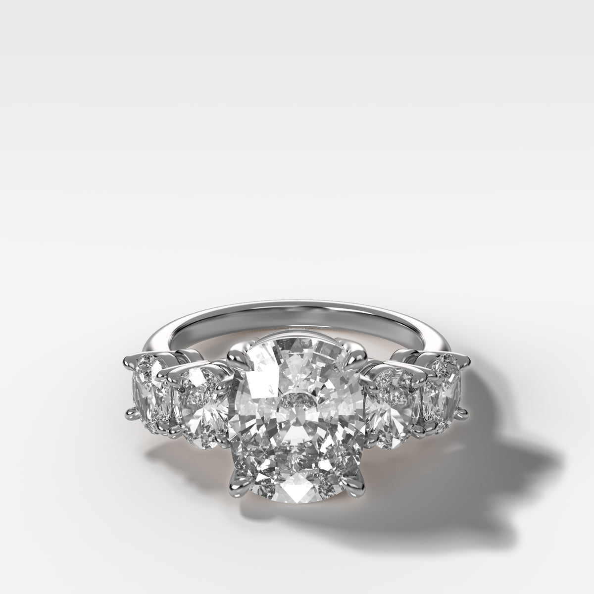 Five Stone Oval Engagement Ring With Elongated Cushion Cut Diamond