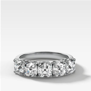 Five Stone Claw Set Diamond Wedding Band with Old Mine Cuts