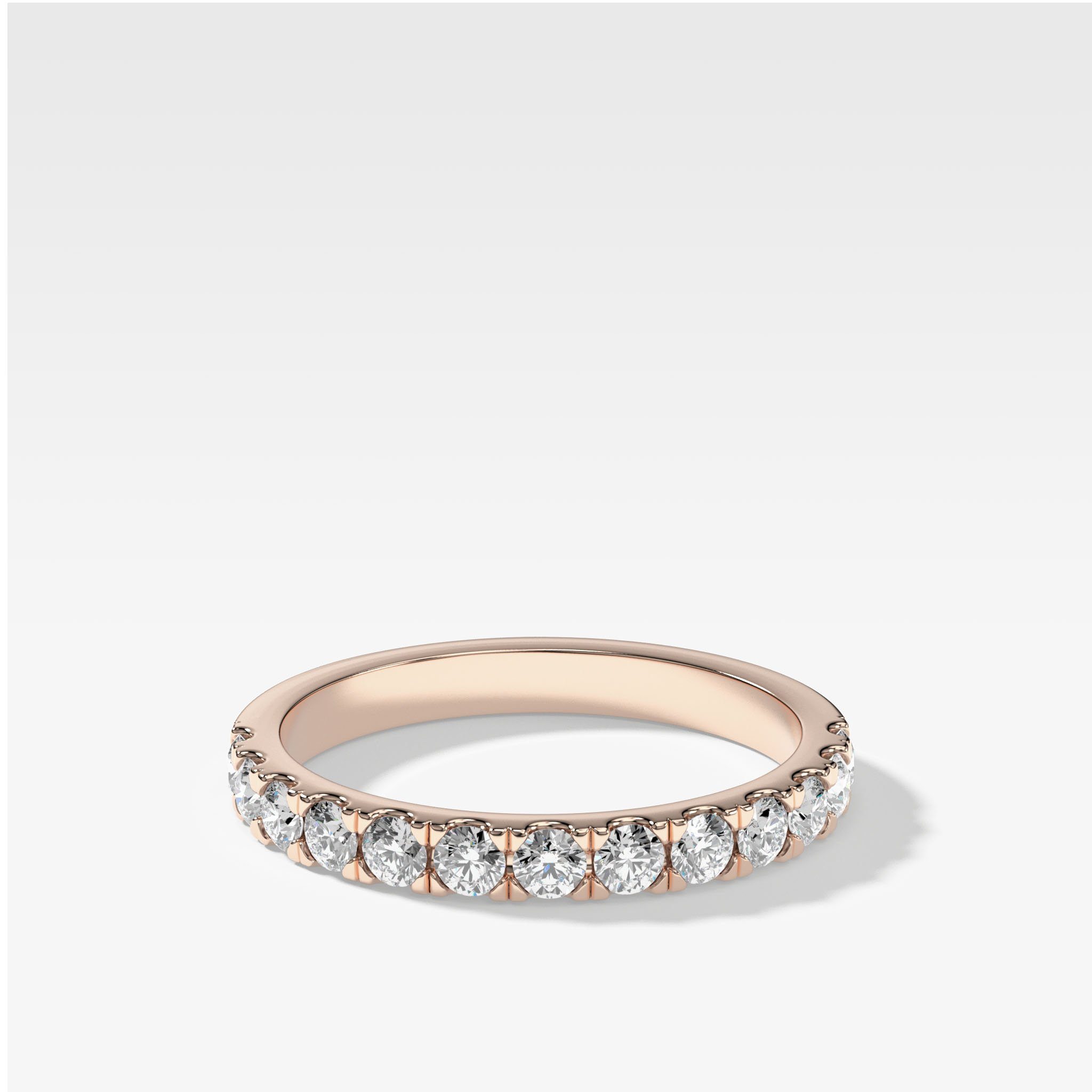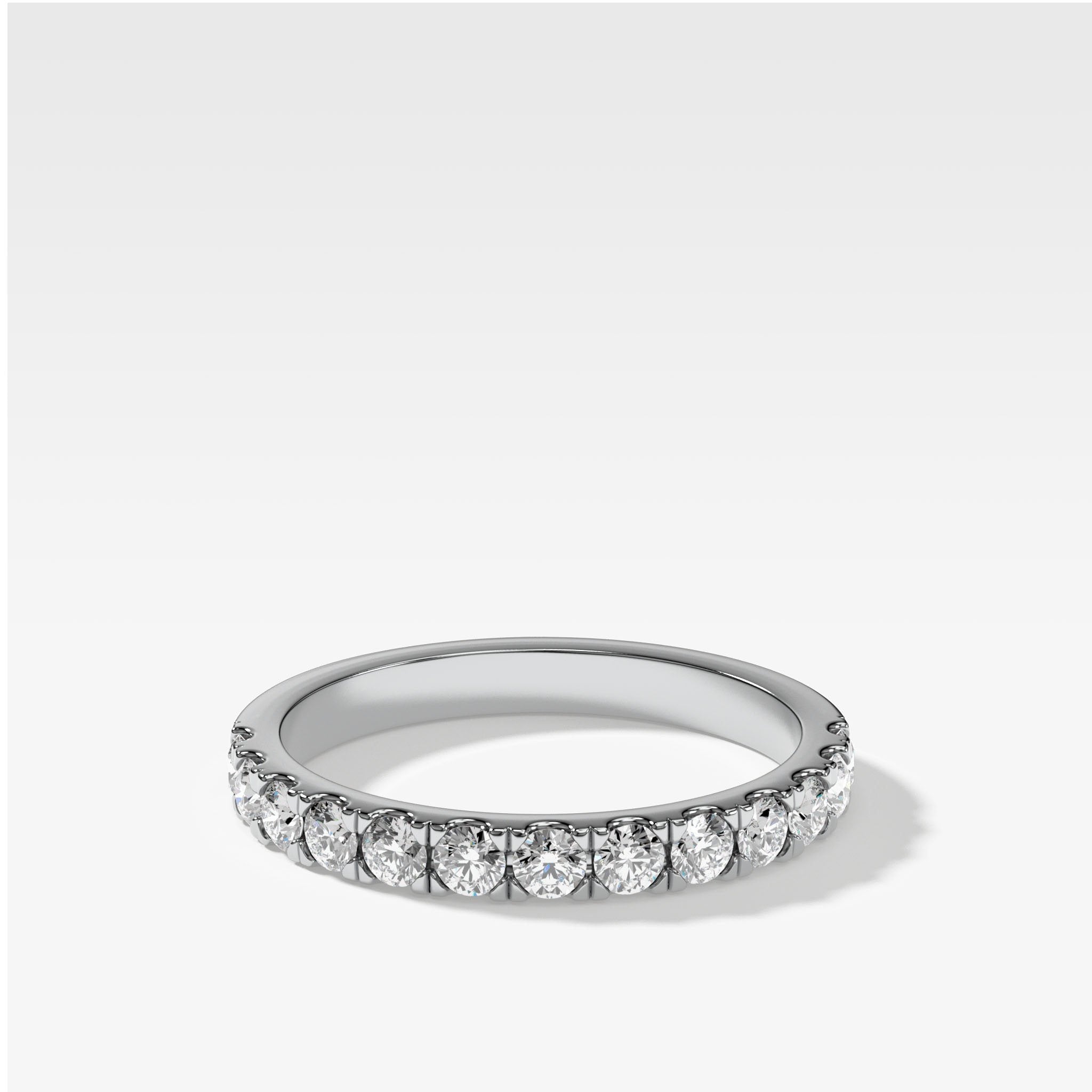 As eye-catching as the annual meteor shower of its name, this band features round-cut diamonds in a custom pavé setting with handmade cuts that highlight the sparkle of each stone.