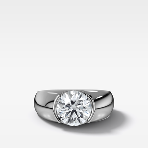 Send ring sizerThe Half Bezel Dome Engagement Ring features a round diamond set in a smooth bezel, framed by a softly domed band that feels both sculptural and timeless.