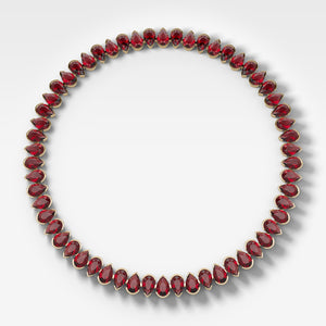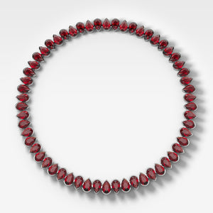 Introducing our exquisite Half Bezel Pear Ruby Diamond Choker Necklace, a testament to timeless elegance and masterful craftsmanship.