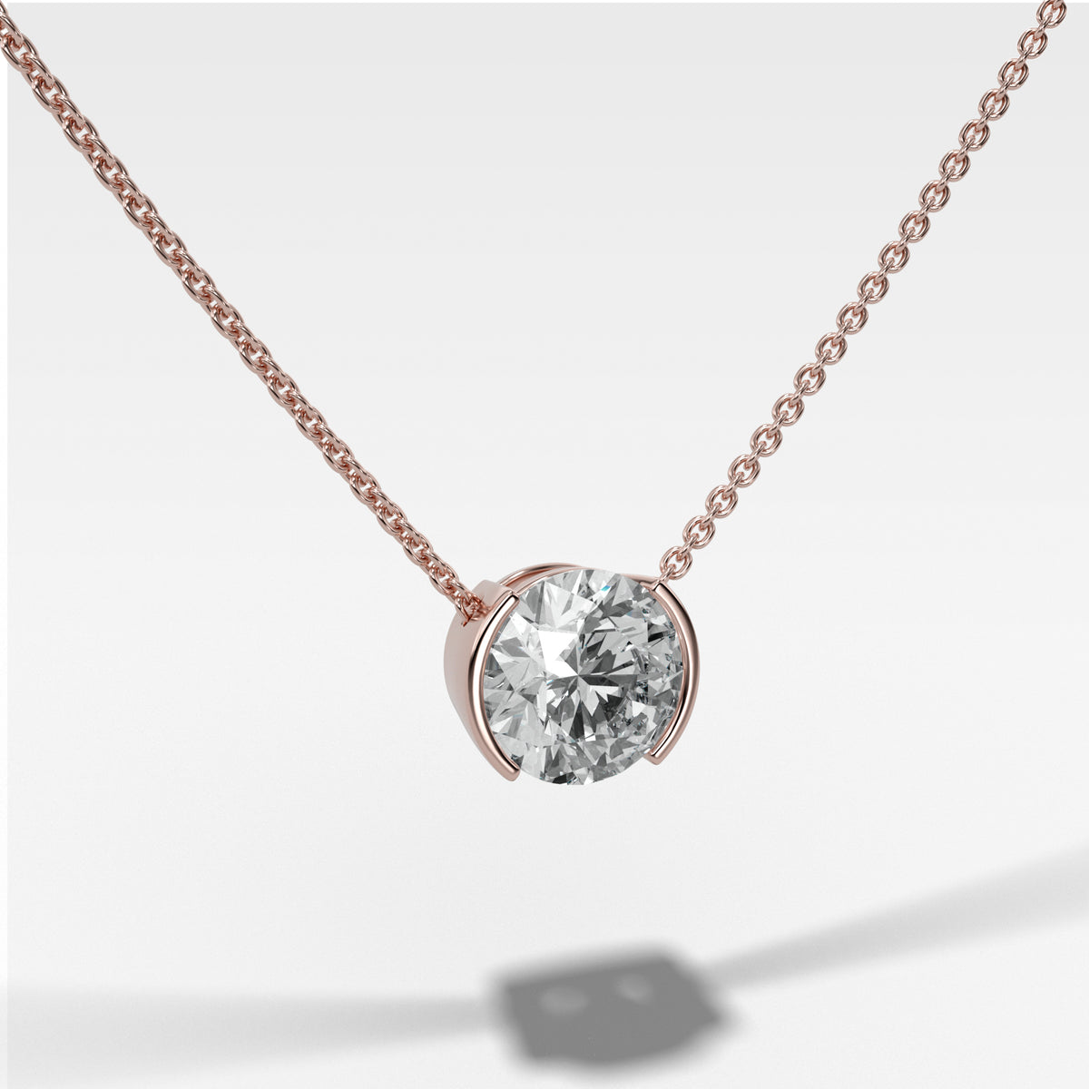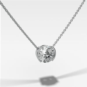Half Bezel Pendant Necklace with Round Cut Diamond