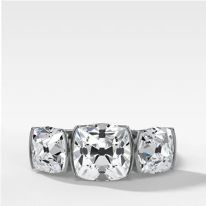 Half Bezel Triad Engagement Ring With Old Mine Cut Diamonds