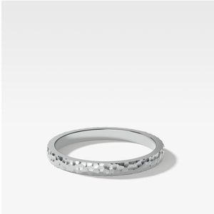 The texture of this flat-edge band adds extra glint to any ring with which you pair it, or stands alone as an intriguing accent.