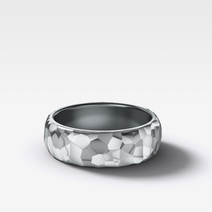 6mm half rounded wedding band with a hammered finish.