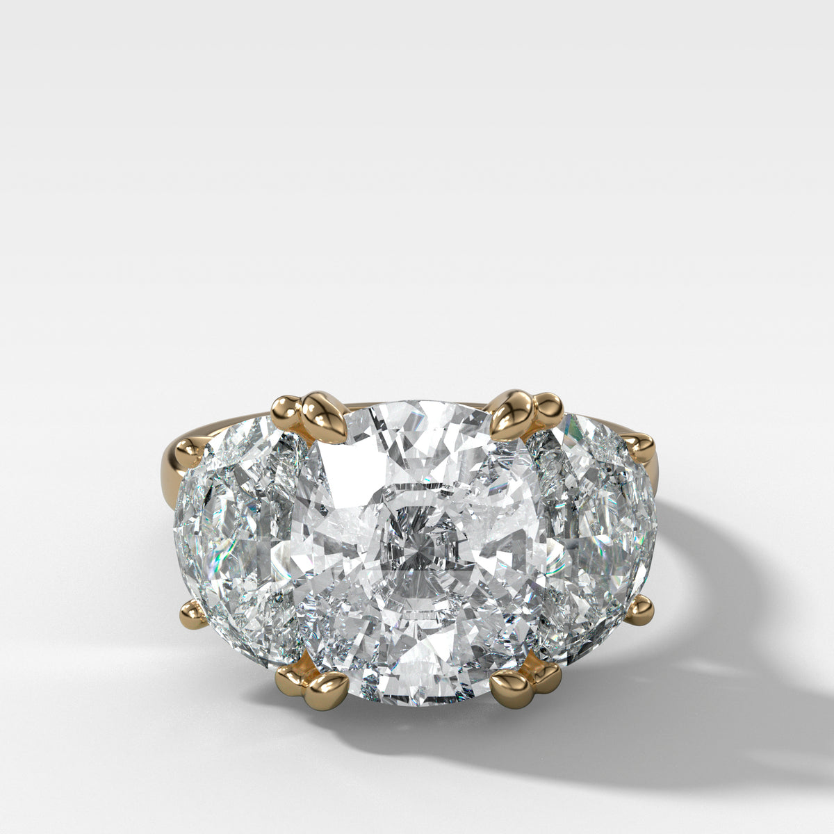 Jumbo Three Stone ring with Half Moon sides & an Elongated Cushion Cut
