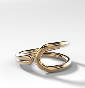 Two rounded metal bands meeting together to form a loop silhouette.