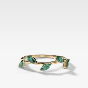 The marquise emeralds in the leaf shapes of this delicate band add a little color to your daily stack.