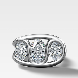 A unique spin on our Lasso Triad engagement ring, with waves of precious metal holding the diamonds in place, circled by a lasso of gold.