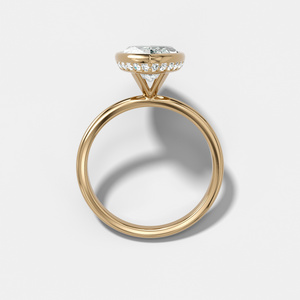 Send ring sizerThe Penumbra Ring highlights a striking marquise cut diamond in a protective bezel setting paired with a glowing hidden halo beneath. Its modern silhouette delivers timeless elegance and brilliant light return.