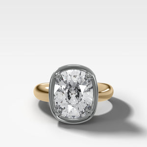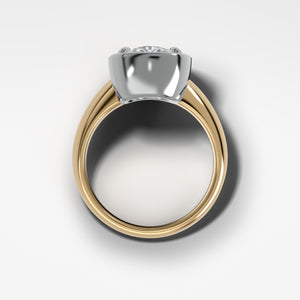 Mixed Metal Club Ring Solitaire Engagement Ring With an Elongated Cushion Cut Diamond