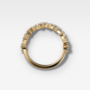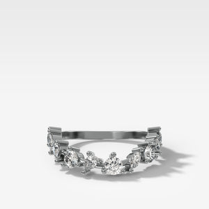 A perfectly contoured band set with round, pear, and marquise diamonds, designed to flow effortlessly along your engagement ring.