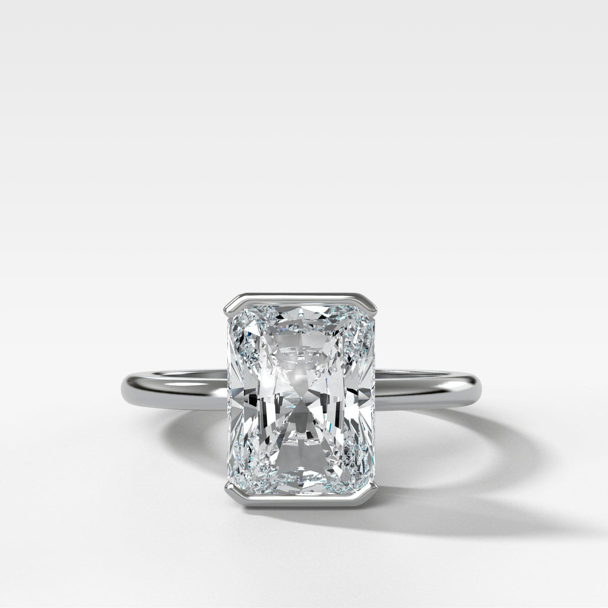 North South Half Bezel Solitaire Engagement Ring With Elongated Radiant Cut Diamond