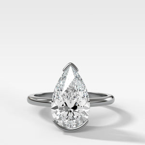 READY TO SHIP: North South Half Bezel Solitaire Engagement Ring With Pear Cut Diamond