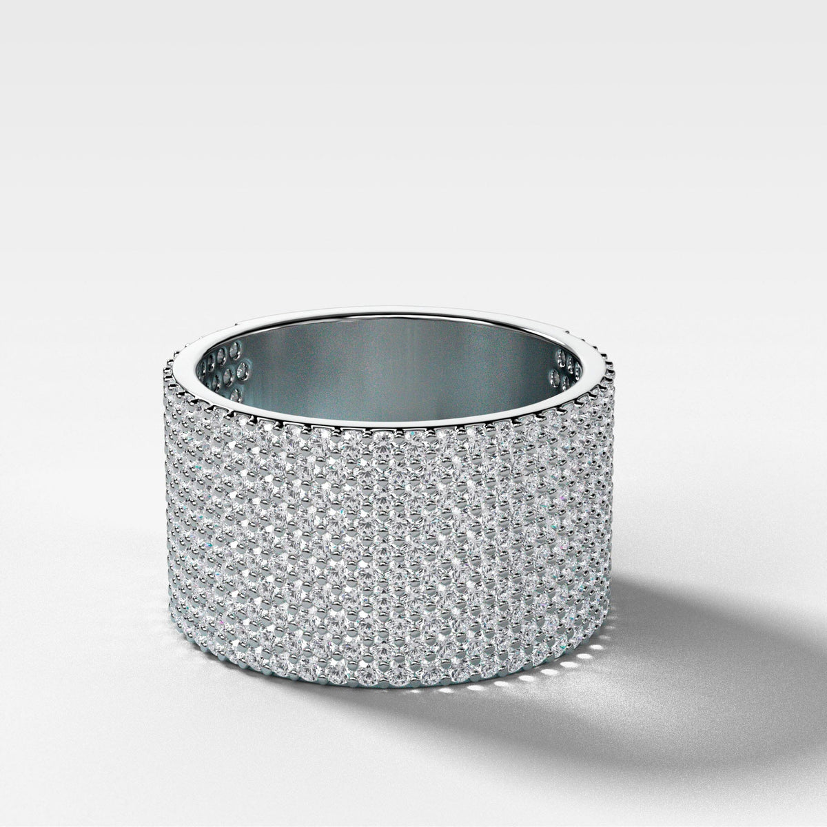 Introducing the mesmerizing Pavé Cigar Band - a 10mm wide diamond wedding band that will steal your heart! This extraordinary statement piece boasts endless rows of sparkling, perfectly cut diamonds, creating an eye-catching display of love and commitment. Expertly crafted with ethically sourced diamonds, this unique wedding band not only showcases your love but also your dedication to responsible sourcing. A must-have for modern couples seeking a captivating twist on a classic design, the Pavé Cigar Band is perfect for those who appreciate the finer things in life. Discover the magic of this stunning diamond ring, and let your love shine bright.