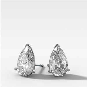 Any occasion, Pear Cut studs in a single point prong to beautify and protect the diamond.
