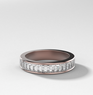 Thin metal channels securing 19 stunning baguette diamonds in a row.